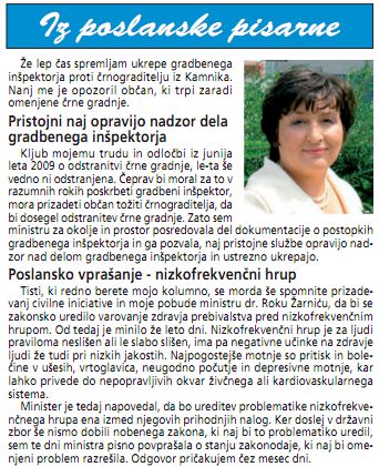 Iz poslanske pisarne o nizkofrekvenčnem hrupu