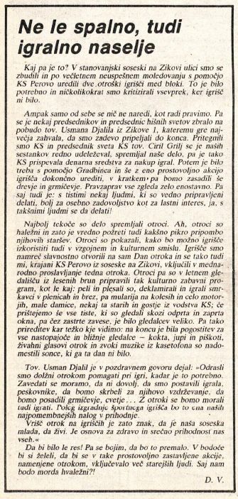 V želji po svetlejših novicah iz KS Perovo, pojdimo »nekaj dni« naprej. V leto 1988.