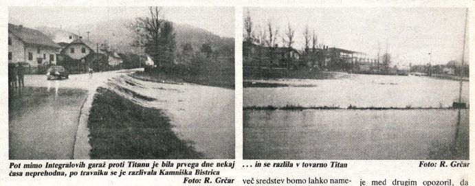 Poplave na Perovem, 1. november 1990. O tem sem že veliko pisala, zato naj tokrat govorijo »le« slike in prispevek iz 15. številke ter prispevek iz 16. številke Kamniškega občana.